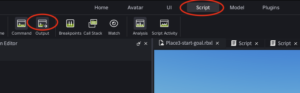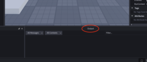 Scriptタブを選択してOutputウインドウを表示する。